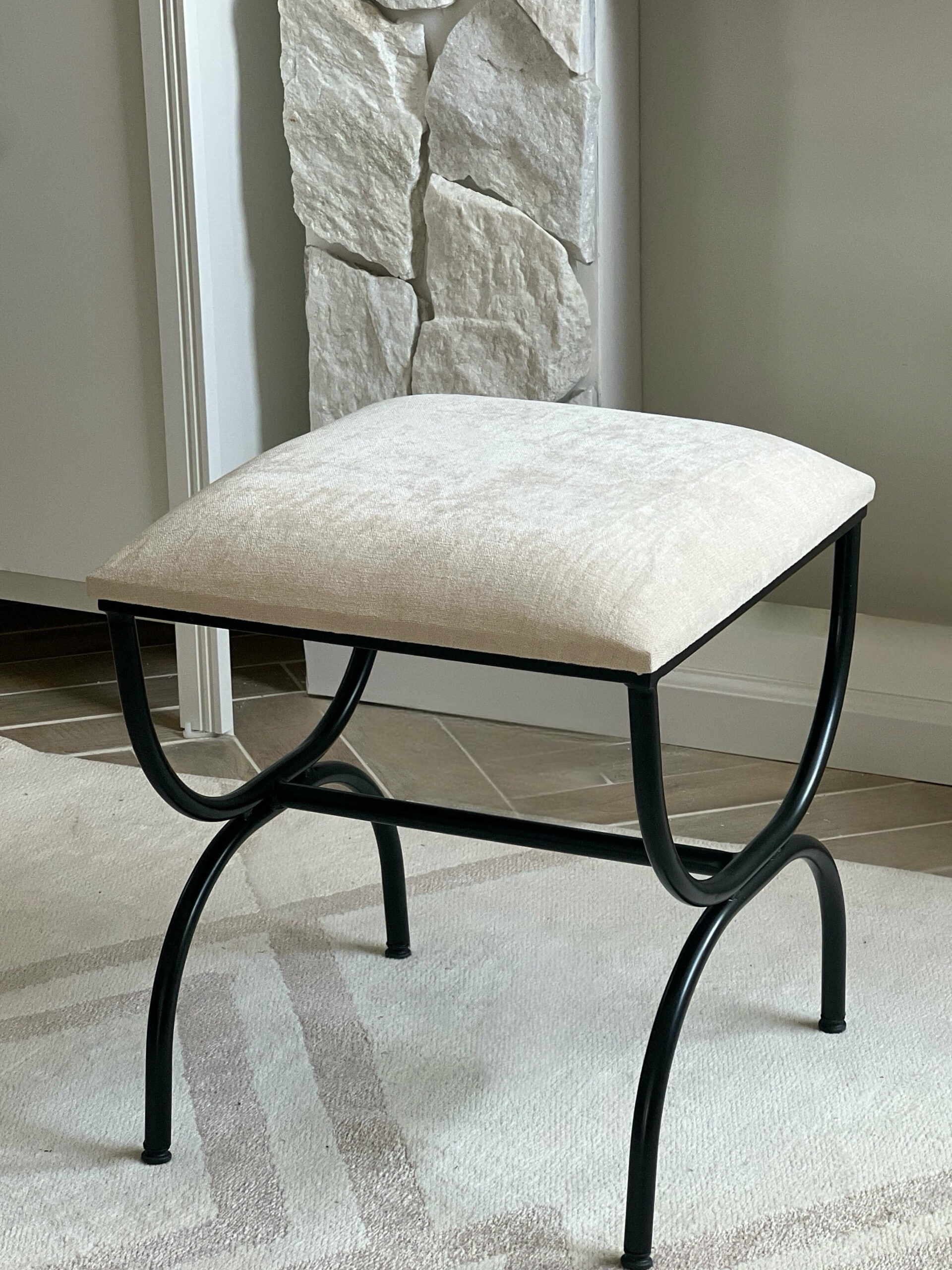 ספסל מתכת קלאסי בג’ עם בד נעים ורגליים דקות ועדינות