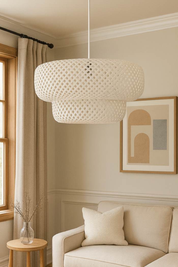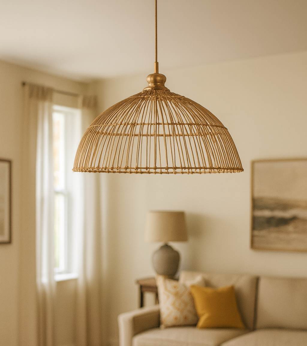 מנורה תלויה מהממת העשויה אהיל ראטן.
