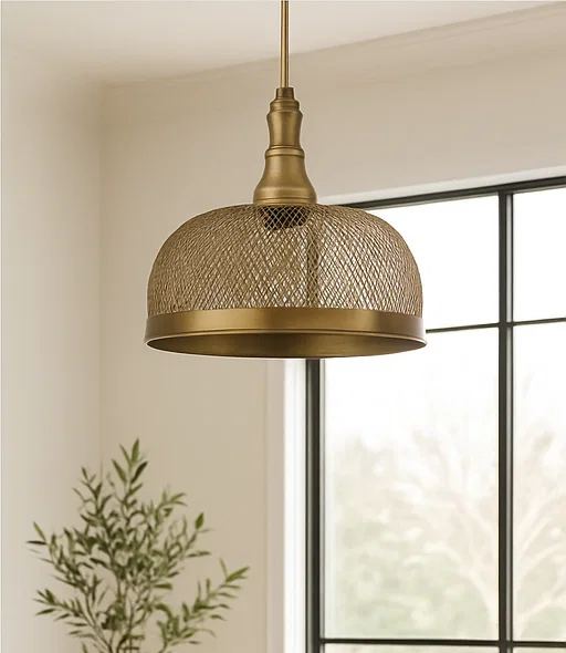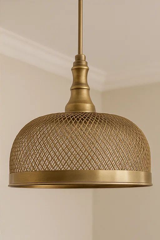 מנורה דגם לילי. מנורת תלייה עשויה נחושת עם דוגמת רשת אלגנטית. גוף תאורה מעוצב בסגנון ייחודי ומוסיף טאצ' יוקרתי לכל חלל – אידיאלי לפינת אוכל, סלון או מטבח.