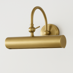 זרוע נחושת פוקוס. מנורת זרוע קיר בעיצוב אלגנטי בגוון זהב מט יוקרתי. גוף תאורה קלאסי ומעודן. שילוב מושלם של עיצוב מודרני ונגיעה וינטג’ית.