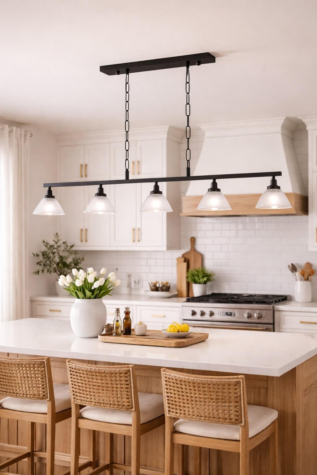 העיצוב הארוך והמאוזן מעניק למנורה מראה יוקרתי ומתאים במיוחד לחללים מרכזיים כמו אי במטבח, שולחן אוכל או חלל אירוח