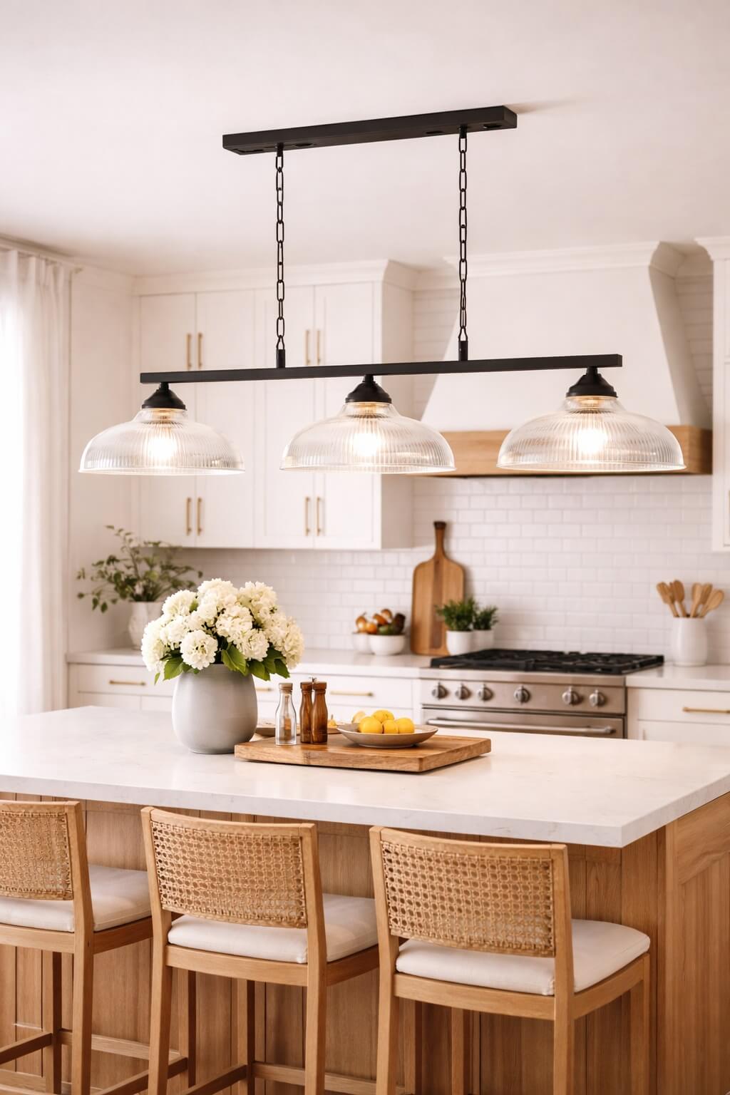 הזכוכיות השקופות עם הטקסטורה מפזרות את האור בצורה נעימה ומייצרות תאורה רחבה ואחידה – אידיאלי מעל אי במטבח, שולחן אוכל או פינת עבודה