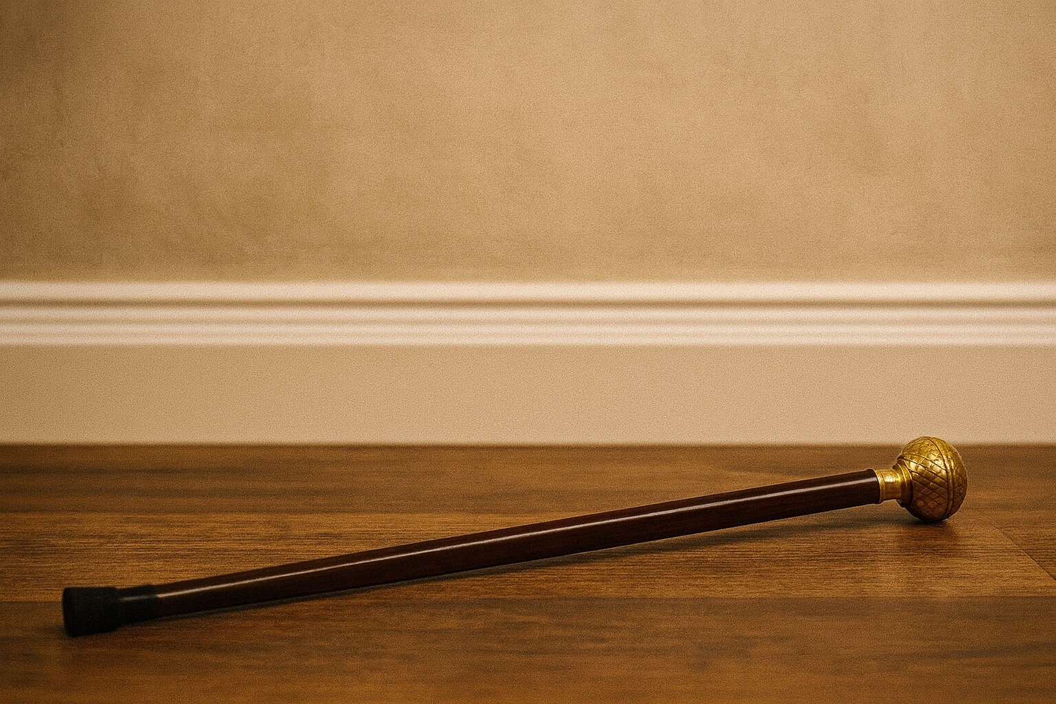 מקל סבא אלגנטי בעיצוב קלאסי, המשלב ידית מתכת מוזהבת עם גוף עץ כהה ומלוטש. הבסיס מצויד בגומי איכותי ליציבות מירבית ולמניעת החלקה, מה שהופך אותו לנוח ובטוח לשימוש יומיומי.