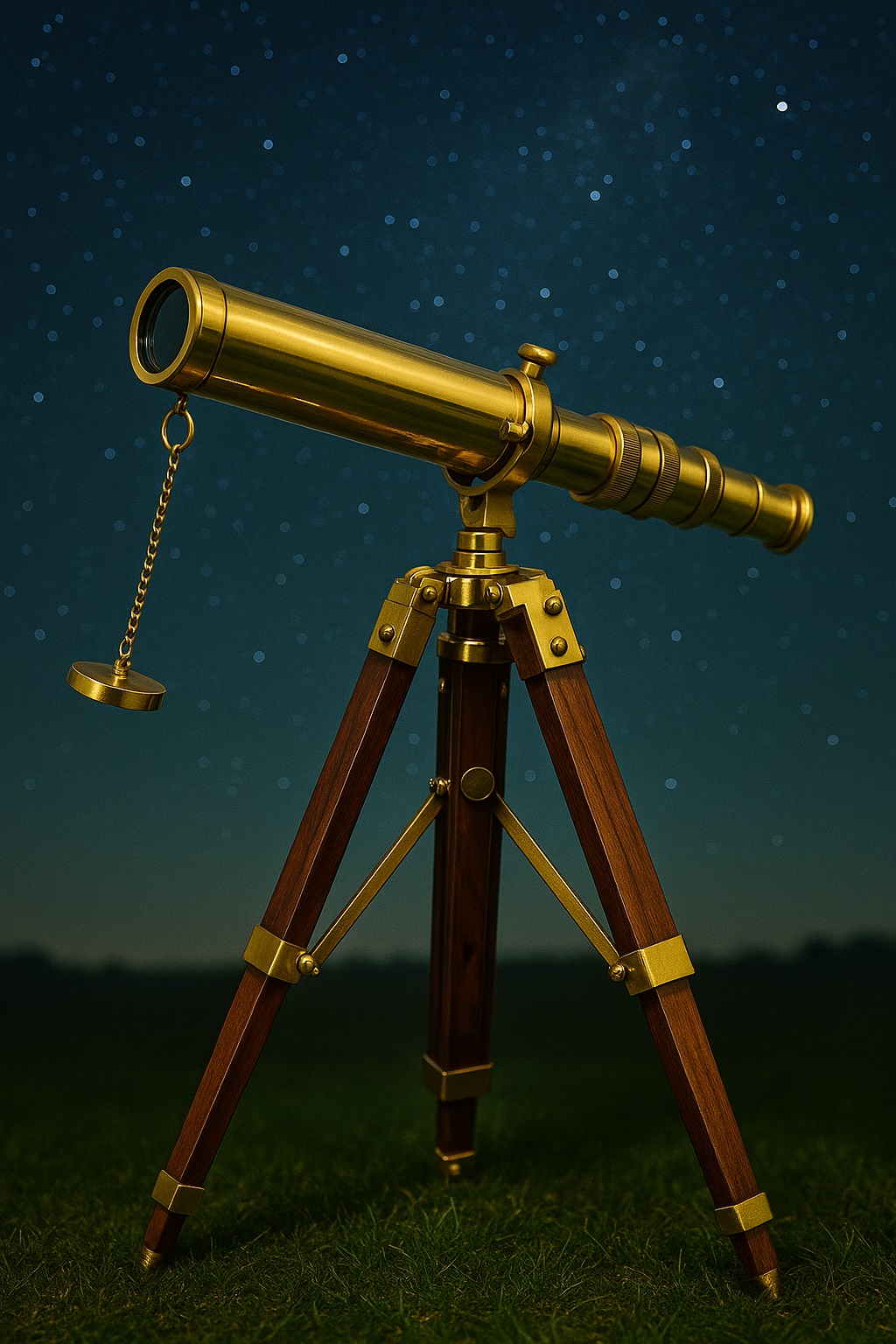 טלסקופ דקורטיבי מעוצב בסגנון וינטג' ימי, עשוי נחושת איכותית ומותקן על חצובה מעץ מלא בשילוב פרזולי זהב. פריט אלגנטי שמשלב בין אסתטיקה קלאסית לנוכחות מרשימה – מושלם לשילוב על קונסולה, שולחן עבודה, מדף ספרים או כמתנה ייחודית לחובבי נוסטלגיה וניווט.
