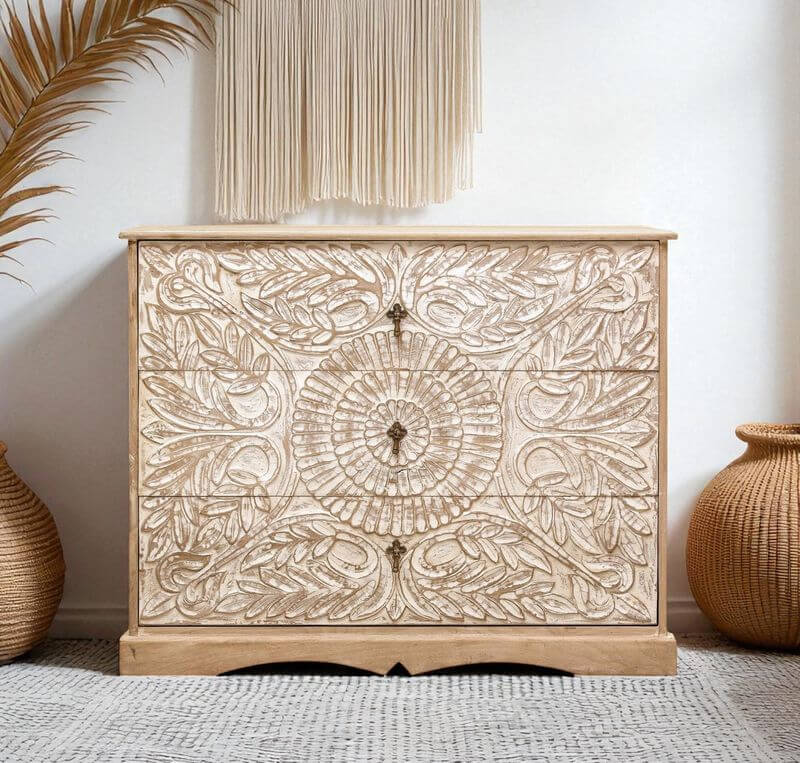 ארון בגדים מעץ מלא עם דלתות ראטן – גימור טבעי בהיר ארון בגדים אלגנטי ונעים עשוי עץ מלא בגימור טבעי ובהיר, עם דלתות משולבות ראטן טבעי המעניקות תחושת קלילות, אוורור ומראה רך והרמוני. העיצוב הקלאסי עם קימורים עדינים בחלק העליון משתלב באופן מושלם בחדר שינה, חדר ילדים, חדר אורחים או חלל אחסון מעוצב בסגנון כפרי, בוהו או טבעי. הארון מספק פתרון אחסון נוח ומרווח לבגדים, מצעים ואביזרים, ומשלב פונקציונליות עם אסתטיקה על-זמנית. מאפיינים עיקריים: עשוי עץ מלא איכותי דלתות עם שילוב ראטן טבעי גימור בהיר ונעים לעין עיצוב קלאסי עם קימורים רכים ידיות מתכת אלגנטיות מבנה יציב וחזק מתאים לחדר שינה, חדר ילדים או חדר אורחים מידות: רוחב: 90 ס"מ עומק: 40 ס"מ גובה: 180 ס"מ
