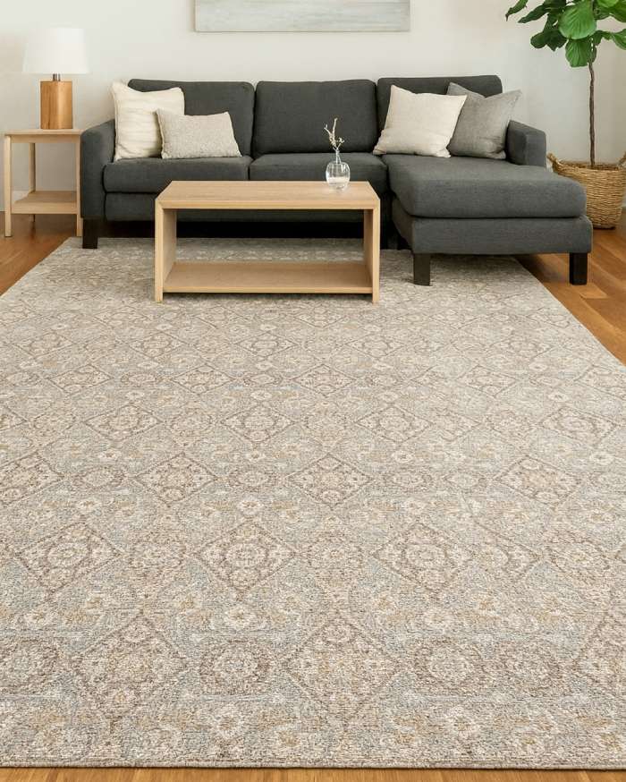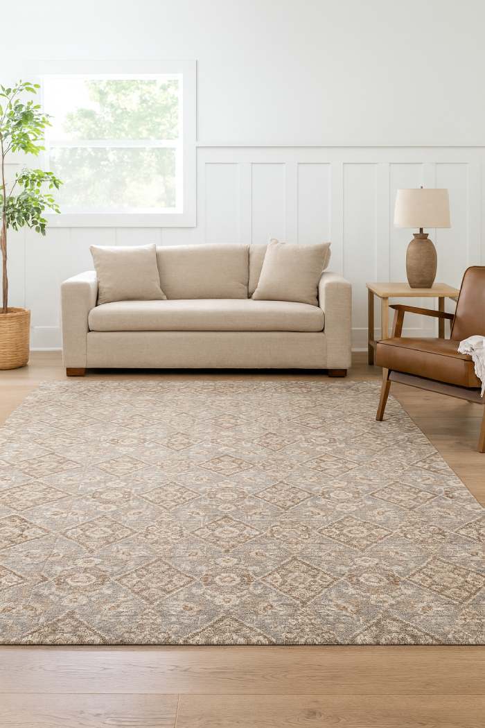 השטיח רך למגע, נעים לדריכה ועמיד לשימוש יומיומי – אידיאלי לסלון, חדר שינה או פינת ישיבה. בזכות צבעיו הניטרליים הוא מתאים כמעט לכל סגנון עיצוב, מכפרי ועד מודרני.