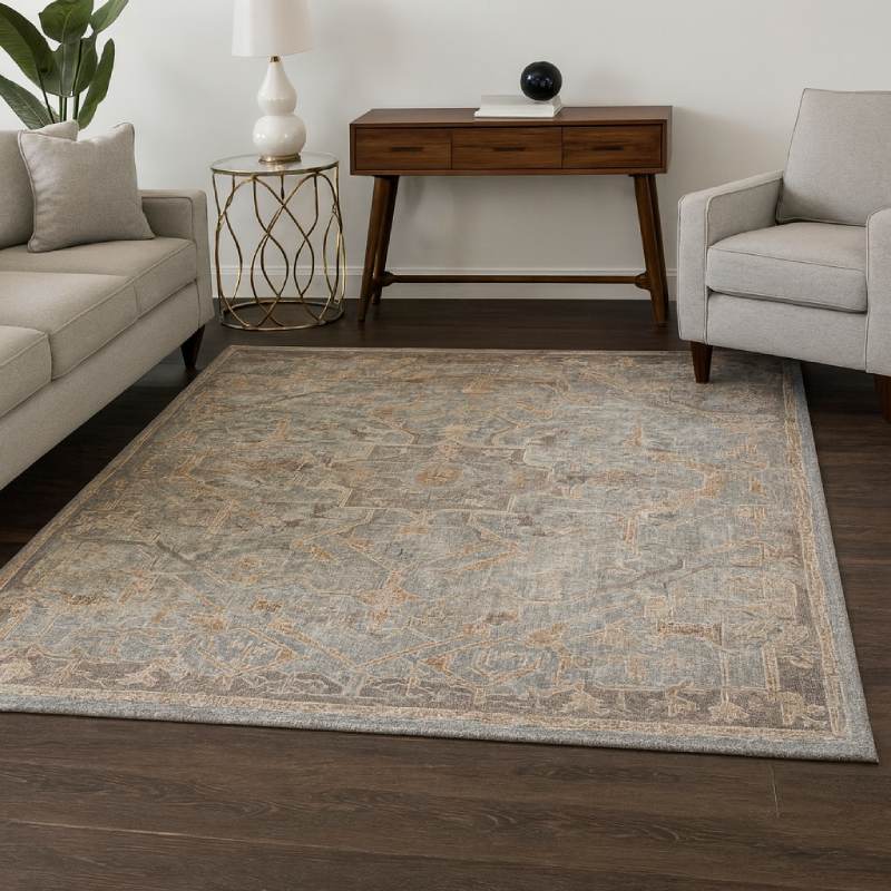 שטיח יפיפה בעיצוב קלאסי־מודרני, בגווני אפור חמים עם נגיעות כתום עדין המשתלבים בצורה אלגנטית בכל חלל. הדוגמה הגיאומטרית העדינה מעניקה תחושת עומק ויוקרה, ומוסיפה אווירה נעימה ומזמינה לבית.