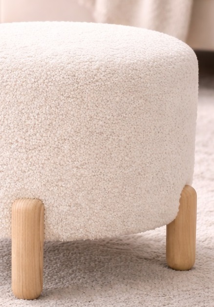 הדום לקסוס בעיצוב עגלגל ונקי, בעל מראה חמים ומודרני המתאים לכל חלל. הטקסטיל בסגנון בוקלה מעניק תחושת רכות ומראה טקסטורלי עשיר, בעוד שהמבנה המלא והיציב מספק נוחות ותמיכה מושלמת לרגליים או לשימוש כהדום ישיבה קליל.