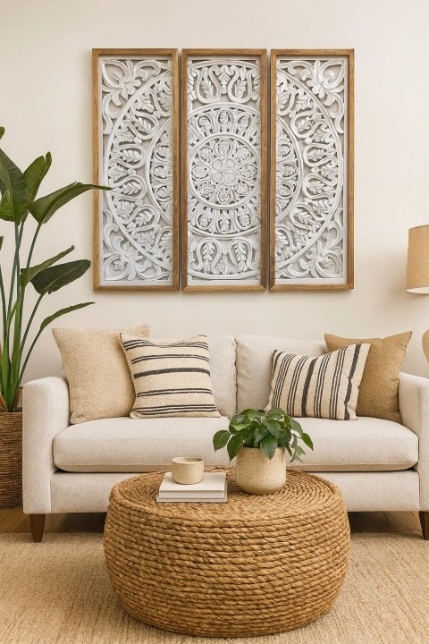 פאנל קיר דקורטיבי בעיצוב ייחודי עם מסגרת עץ טבעית ודוגמה מגולפת בלבן. שילוב מושלם בין חמימות העץ לניקיון הקווים הלבנים, יוצר מראה אלגנטי ומרשים שמתאים לכל חלל – סלון, חדר שינה או מבואה. ניתן לתלות כפריט בודד או לשלב כמה יחד ליצירת קיר אמנותי מעוצב. מוסיף עומק, אור ותחושת יוקרה לבית.