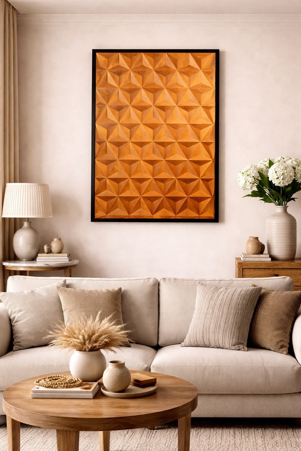 העיצוב הגאומטרי הרך משתלב בצורה מושלמת בסלון, בפינת אוכל, במסדרון או בחללי אירוח מעוצבים, ומוסיף נוכחות מרשימה לקיר גדול.