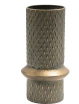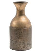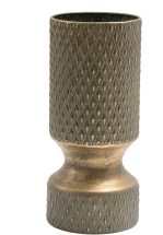 שדרגו את מראה הבית עם אגרטל דקורטיבי מרשים בעיצוב אלגנטי וחם. האגרטל עשוי מתכת בגוון זהב עתיק, עם טקסטורה גיאומטרית עדינה ופס עיצוב דקורטיבי במרכז, שמוסיף עומק ואופי מודרני.