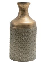 העניקו לביתכם טאצ' של יוקרה וסטייל טבעי עם אגרטל דקורטיבי מעוצב בגוון זהב עתיק ובטקסטורה גיאומטרית מרשימה. החיבור בין גוף עגול ורך לצוואר צר ומעודן יוצר מראה אומנותי עכשווי שמתאים לכל חלל.