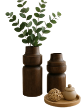 הכניסו חמימות טבעית וקו עיצוב יוקרתי לבית עם סט אגרטלי עץ בגימור כהה ועשיר. צורתם הייחודית בשילוב פרופיל מעוגל ושכבות עיצוב עדינות יוצרים מראה מודרני־אורגני, כזה שמוסיף אופי ונוכחות לכל חלל.