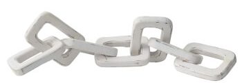הוסיפו טאצ' עיצובי מלא סטייל ואופי עם שרשרת דקורטיבית מעץ בגוון לבן משופשף. פריט עיצוב טרנדי ואמנותי שמוסיף עניין, עומק וחומריות טבעית לכל חלל – מושלם להנחה על שולחן סלון, מגש דקורטיבי, מדף, ספרייה או קונסולה.