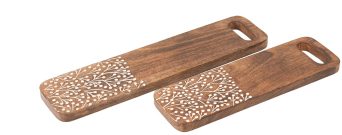 הכניסו אלגנטיות טבעית לשולחן עם סט לוחות עץ מעוצבים, הכוללים חריטה פרחונית עדינה שמוסיפה טאצ' אומנותי ואותנטי. הלוחות מעוצבים בצורת מלבן עם קצוות מעוגלים וידית אחיזה נוחה, מה שהופך אותם לשילוב מושלם בין שימושיות ליופי דקורטיבי.