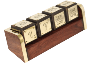 עשוי מעץ מלא בשילוב מתכת מוזהבת קוביות מסתובבות עם תאריכים, חודשים וימי השבוע עיצוב רטרו יוקרתי ומשלים מושלם למשרד, סלון וחדר עבודה מתאים כמתנה ייחודית לחובבי עיצוב, בעלי משרד, עורכי דין, מנהלים ועוד פריט שמשלב יופי, שימושיות ונוכחות מדויקת