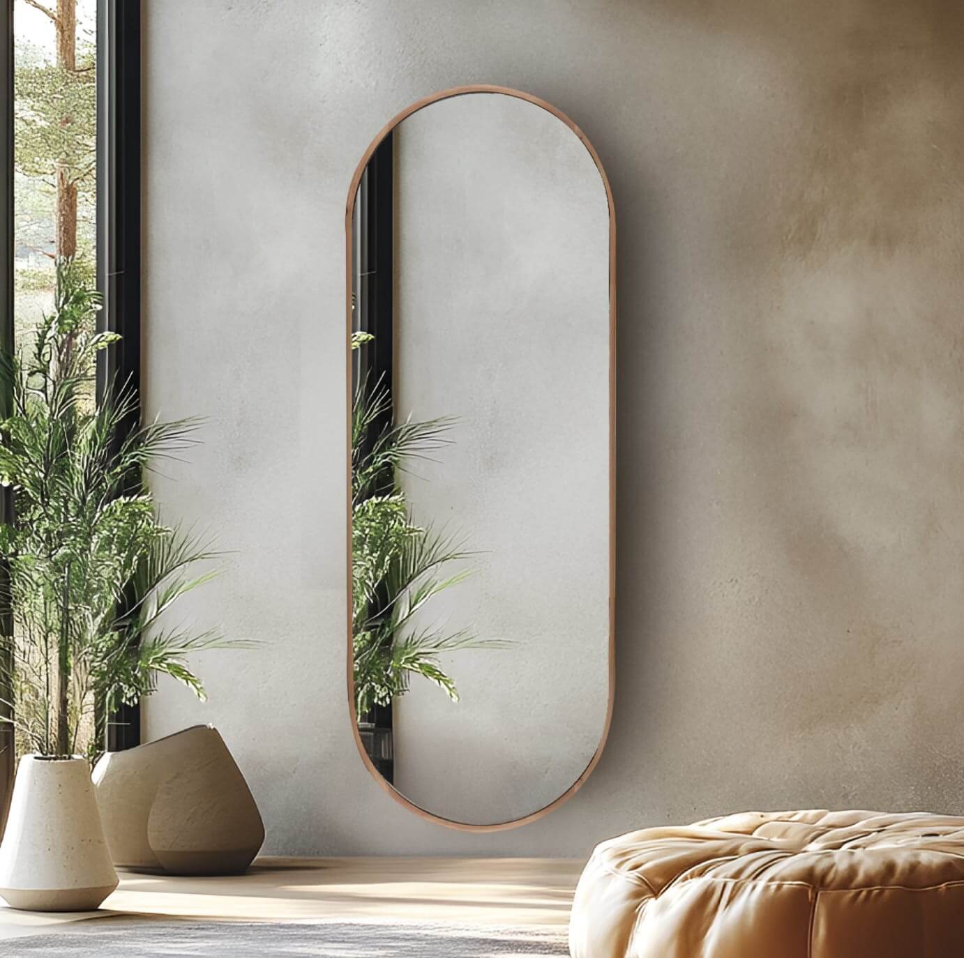 צורתה האובלית הרכה מעניקה תחושת זרימה והרמוניה, והעמדה על רגליים מאפשרת ניידות ונוחות שימוש ללא צורך בקיבוע לקיר. מראה אידיאלית למדידות, הלבשה יומיומית ולשדרוג מיידי של האווירה בחדר.