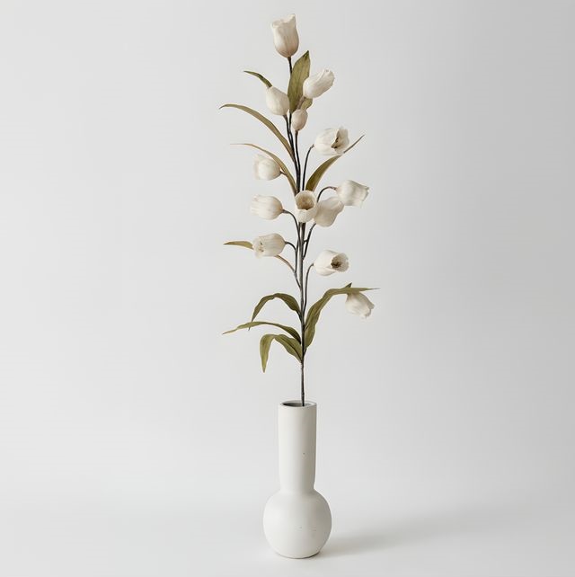 ענף גיבסנית עדין בגוון שנהב רך ואלגנטי, המעניק תחושה טבעית, נקייה ומוארת לכל חלל. הפרחים הזעירים בגוון שמנת יוצרים מראה רומנטי ועדין, בעוד הגבעולים הירוקים הדקים מוסיפים עומק ומרקם מושלם לסידורי נוי.