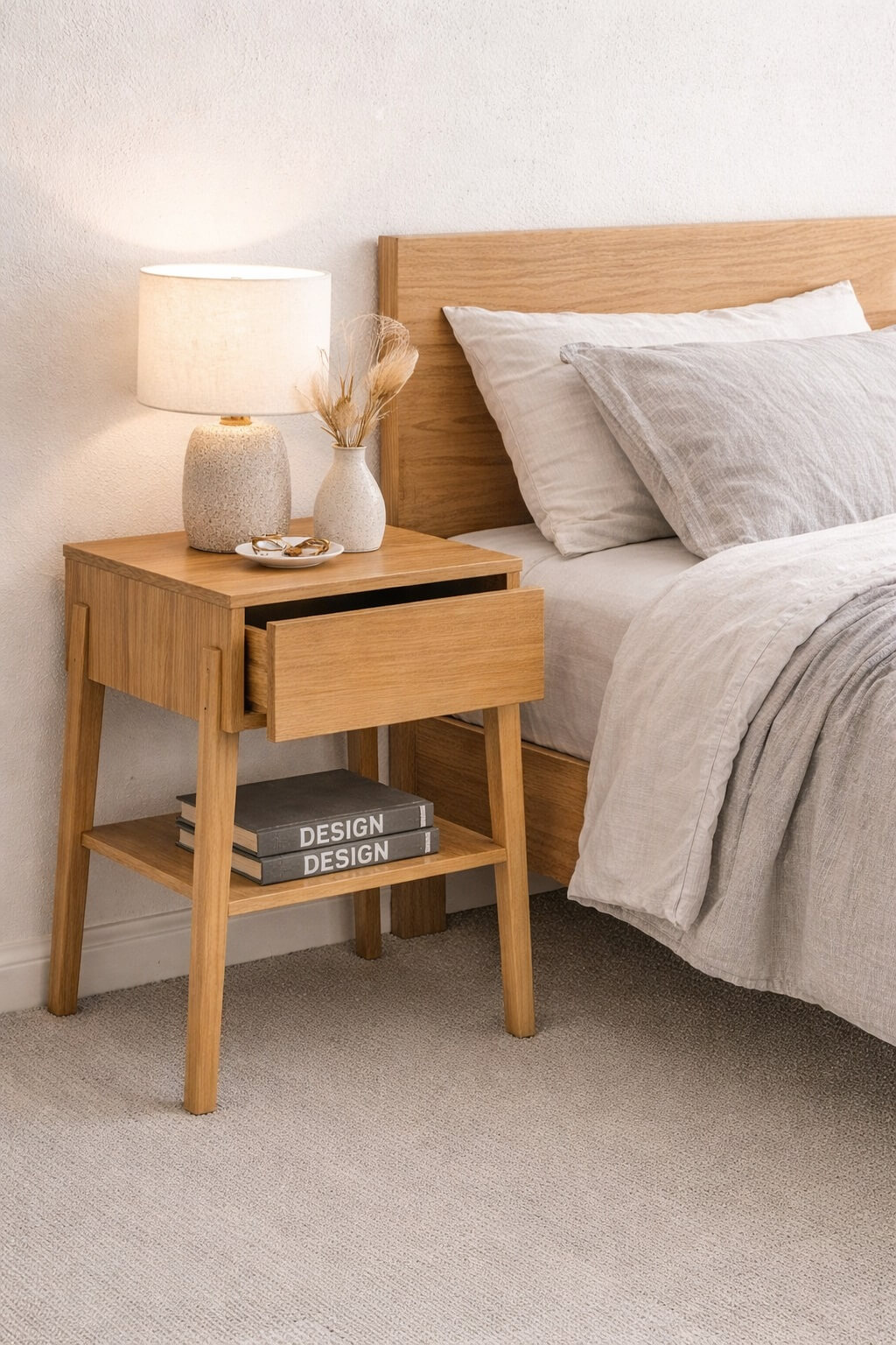 שידת מגירה דגם טלנגנהשידת עץ עם מגירה אחת. עיצוב פשוט ואלגנטי, מתאימה לשדרוג כל חדר ונותנת פתרון אחסון נוח ופרקטי