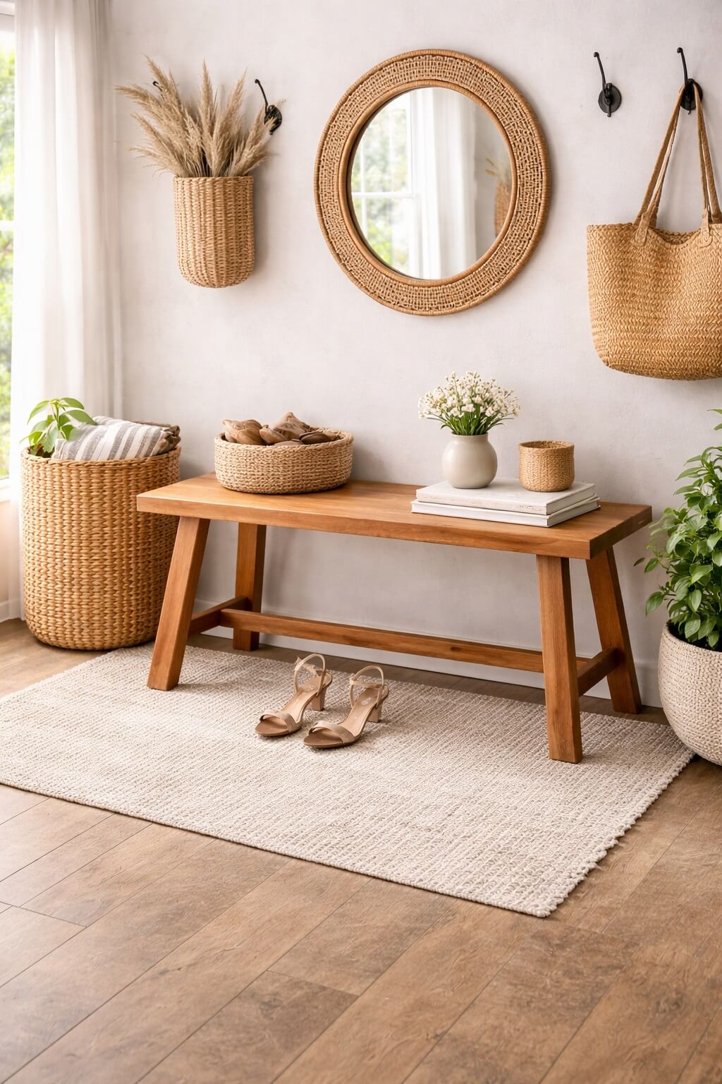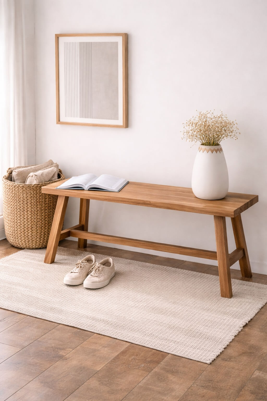 הספסל מתאים למבואת כניסה, לפינת אוכל, לחדר שינה או כפינה דקורטיבית מעוצבת. משתלב בצורה מושלמת עם עיצוב בוהו, סקנדינבי או כפרי טבעי – ומוסיף לכל חלל תחושת חמימות ונעימות.