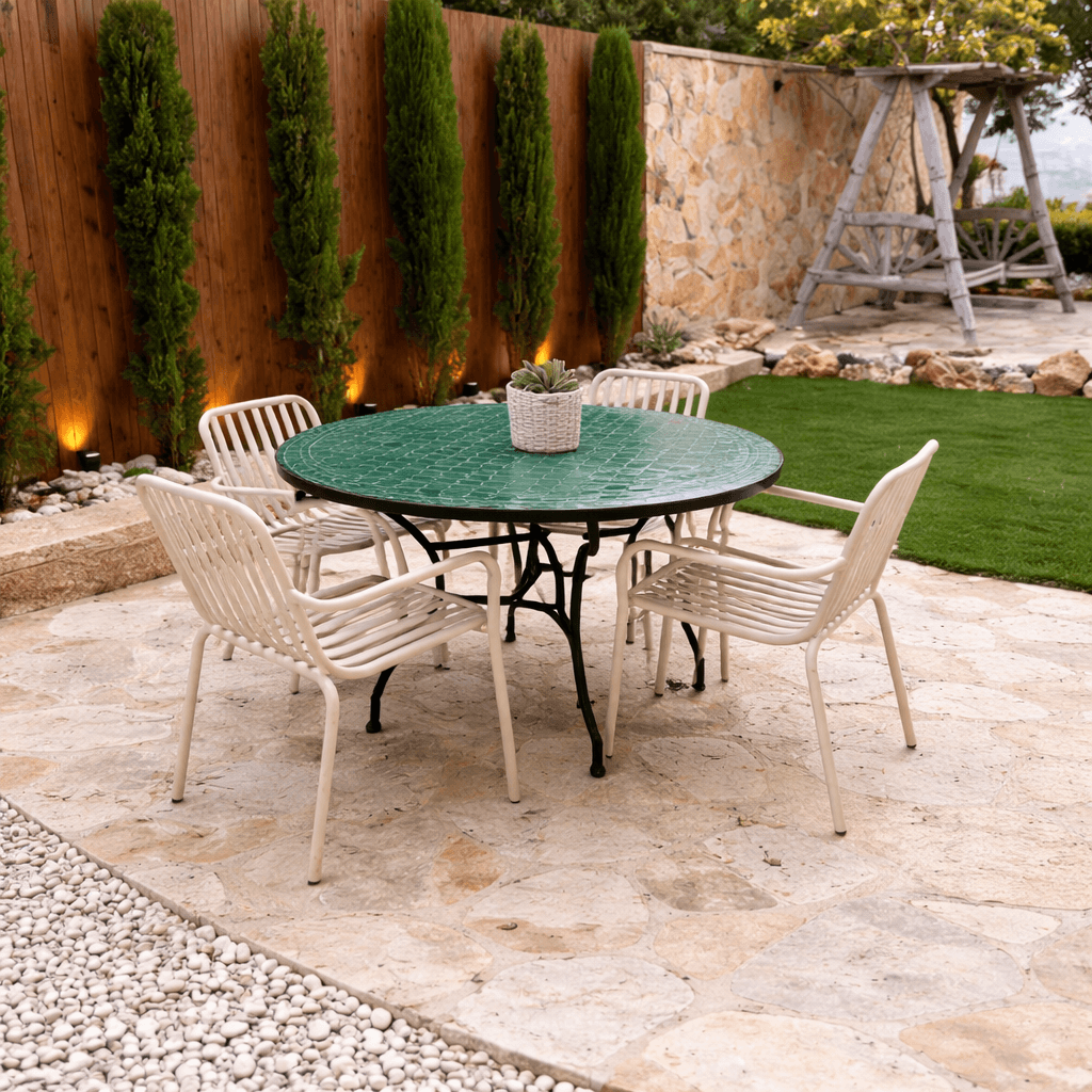 עשוי מבטון ומצופה בפסיפס אמנותי. הכל נעשה בעבודת יד. עומד על בסיס ברזל מפורזל שניתן להזמין אותו בציפוי שחור או בצבע טבעי כפי שתרצו.