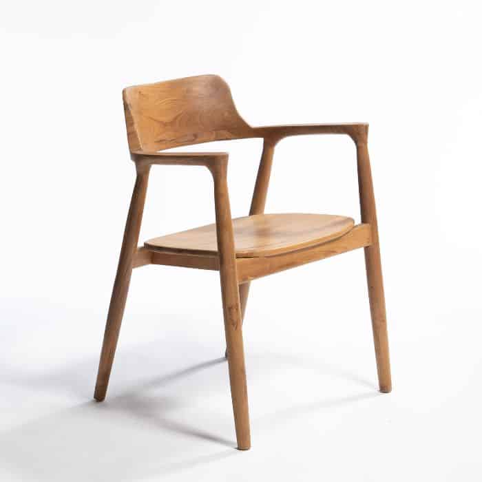 כסא אוכל מעץ טיק עם משענות יד קצרות הוא כיסא עמיד ואסתטי, שמבצע שילוב בין עץ טיק איכותי ואלמנטים מודרניים.