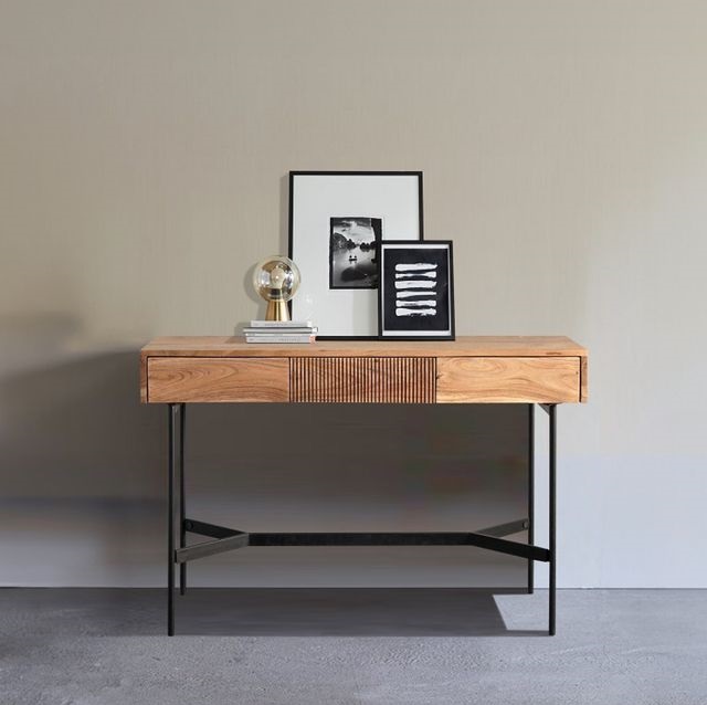 קונסולה "סיאם" – עם 2 מגירות ומדף קונסולה מעוצבת בסגנון מודרני־תעשייתי המשלבת עץ מלא טבעי עם מסגרת מתכת שחורה ליצירת מראה אלגנטי ונקי. הגימור החמים של העץ יחד עם הקווים הישרים מעניקים לפריט תחושה יוקרתית אך מזמינה.