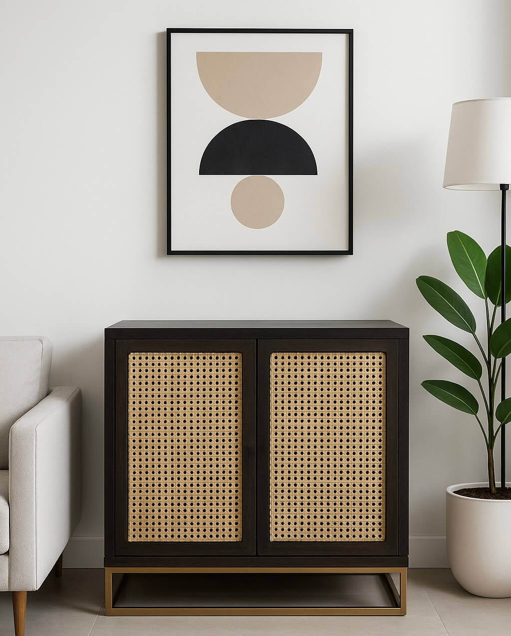 קונסולה מעץ איכותי עם 2 מגירות ו-2 דלתות, פלטת זכוכית למעלה ורגלי ברזל חזקים. מוסיפה סטייל אלגנטי ומרשים לכל חדר בבית.
