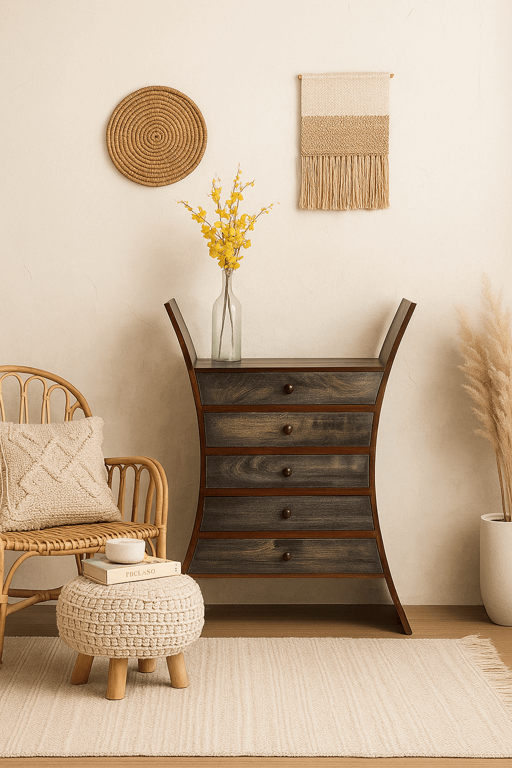 שידה לבנה דגם אנדרה 120,כוללת שלל תאים בעיצוב טבעי וכפרי. מתאימה לכל סגנון עיצוב, מוסיפה חמימות וסטייל לכל חלל בבית, ופרקטית לשימוש יומיומי.