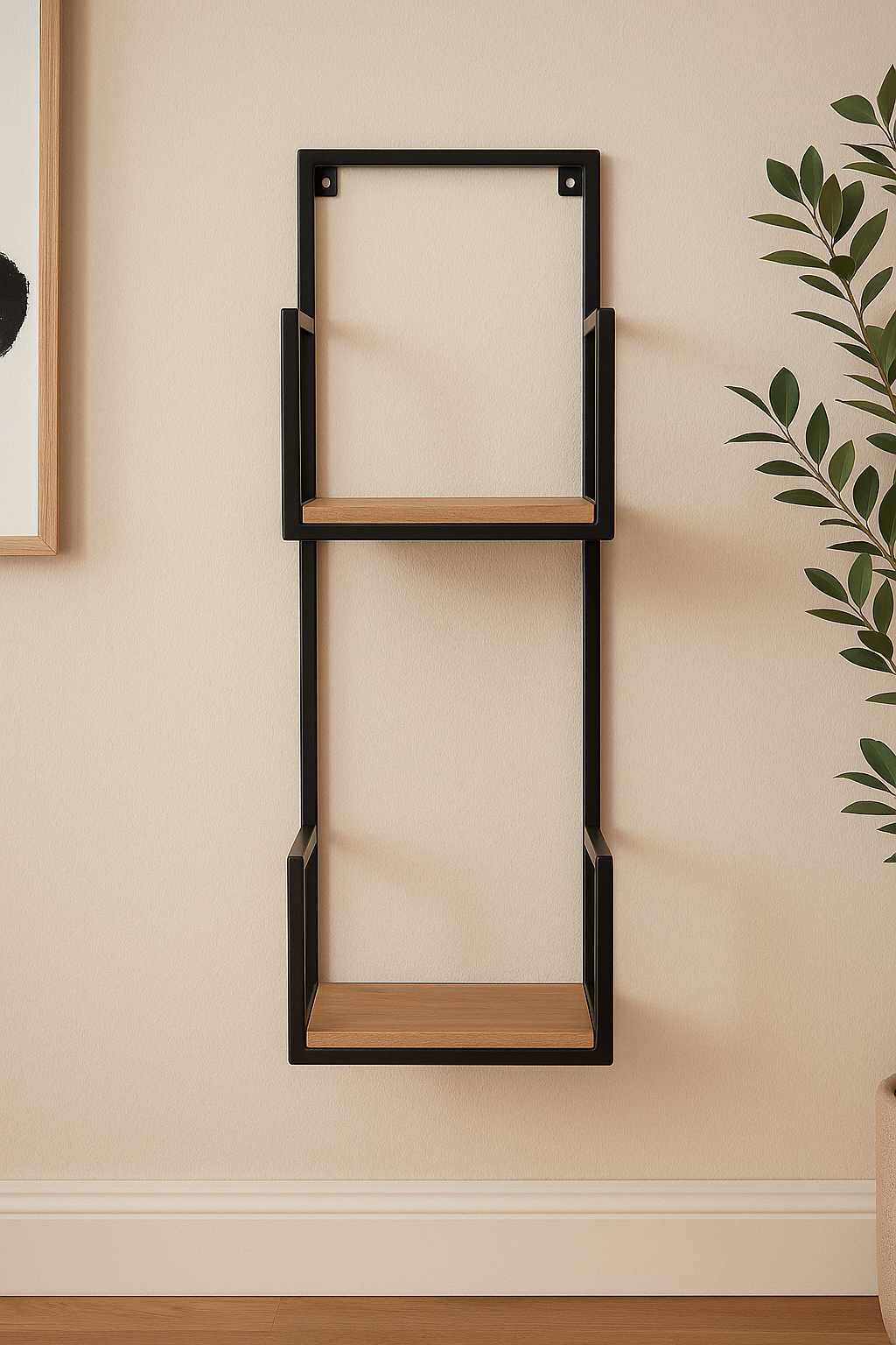 מדף מהמם בעל 2 מדפי מעץ ומסגרת שחורה. מכניס לביתכם אווירה ביתית וכיפית.