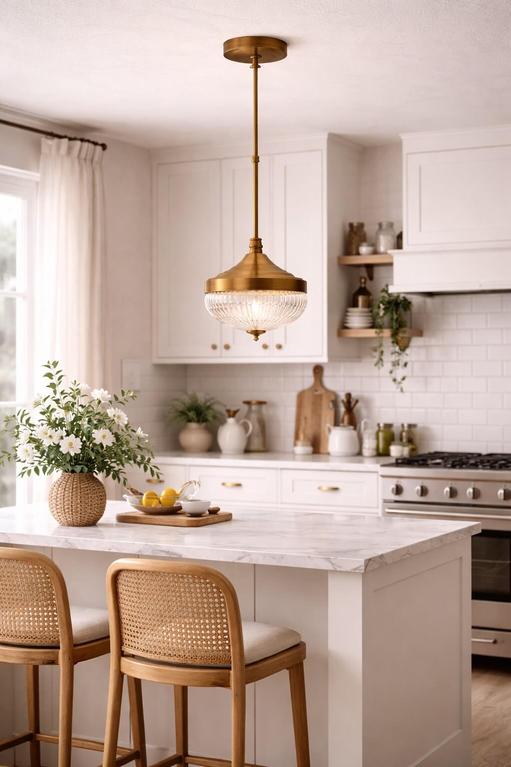 גוף תאורה אלגנטי ויוקרתי בעל שלושה אהילי זכוכית מעוצבים, המשתלבים בצורה מושלמת עם גימור מתכת בצבע נחושת. שילוב החומרים מעניק מראה קלאסי-מודרני המוסיף חמימות וסטייל לכל חלל – במיוחד מעל אי מטבח, פינת אוכל או בר.