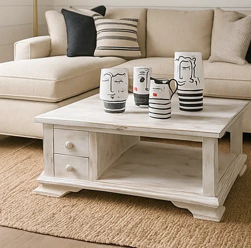 שולחן סלון מקסיקני לבן ווש