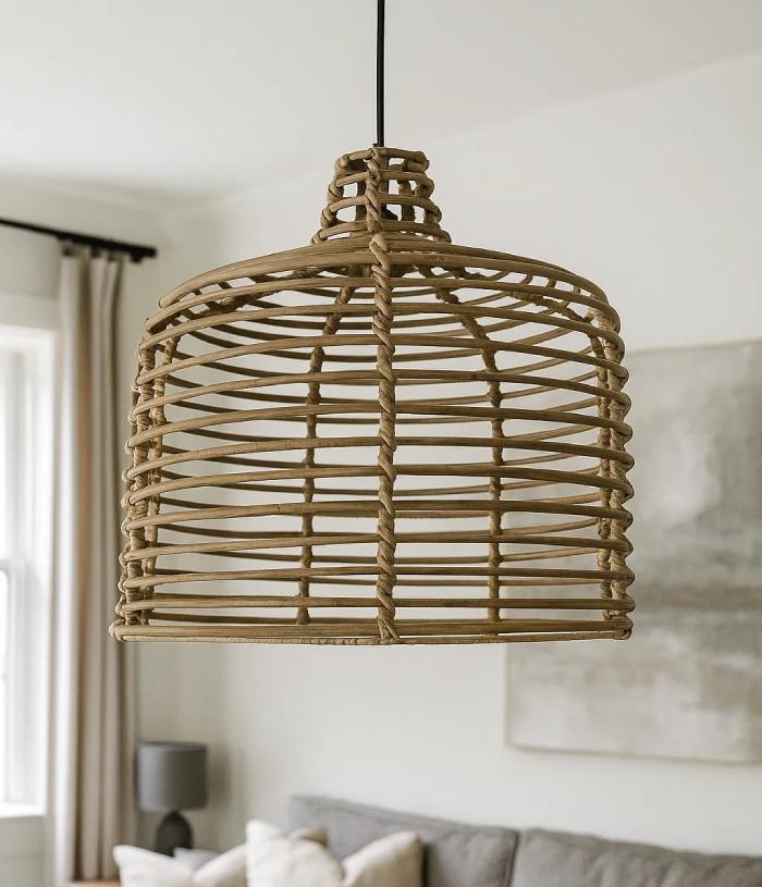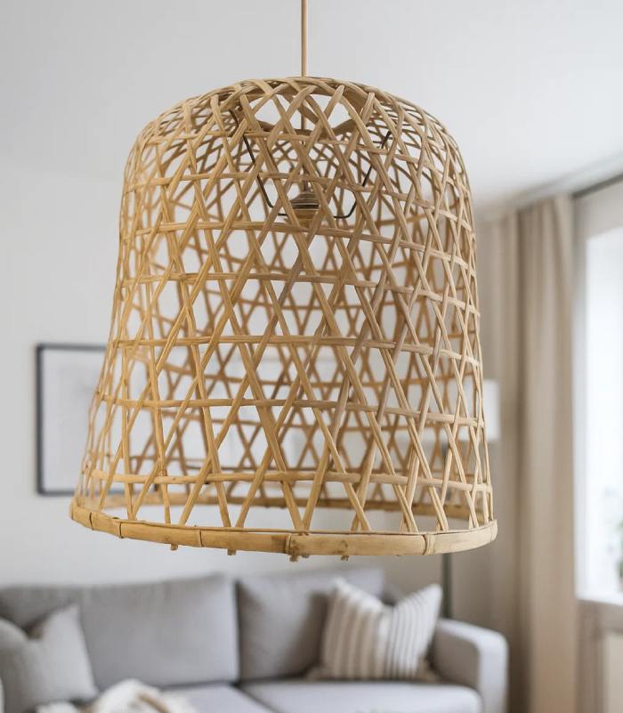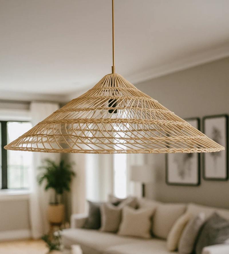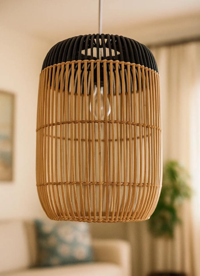 מנורה עשויה קש, התוספת המושלמת לעיצוב הבית שלך, מעניקה אווירה נעימה ואור מיוחד לכל חלל.