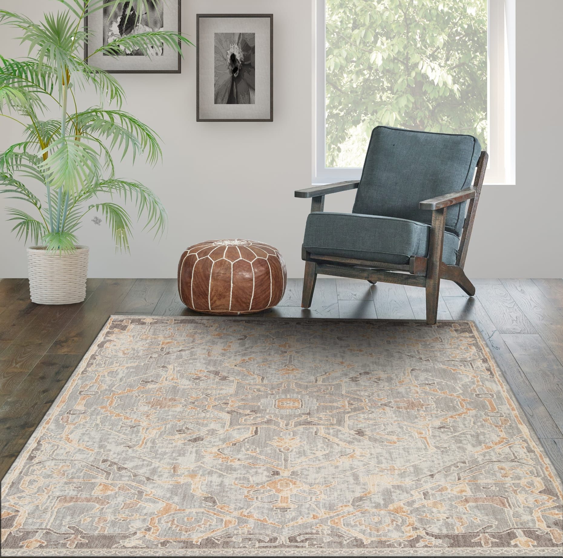 שטיח יפיפה בעיצוב קלאסי־מודרני, בגווני אפור חמים עם נגיעות כתום עדין המשתלבים בצורה אלגנטית בכל חלל. הדוגמה הגיאומטרית העדינה מעניקה תחושת עומק ויוקרה, ומוסיפה אווירה נעימה ומזמינה לבית.
