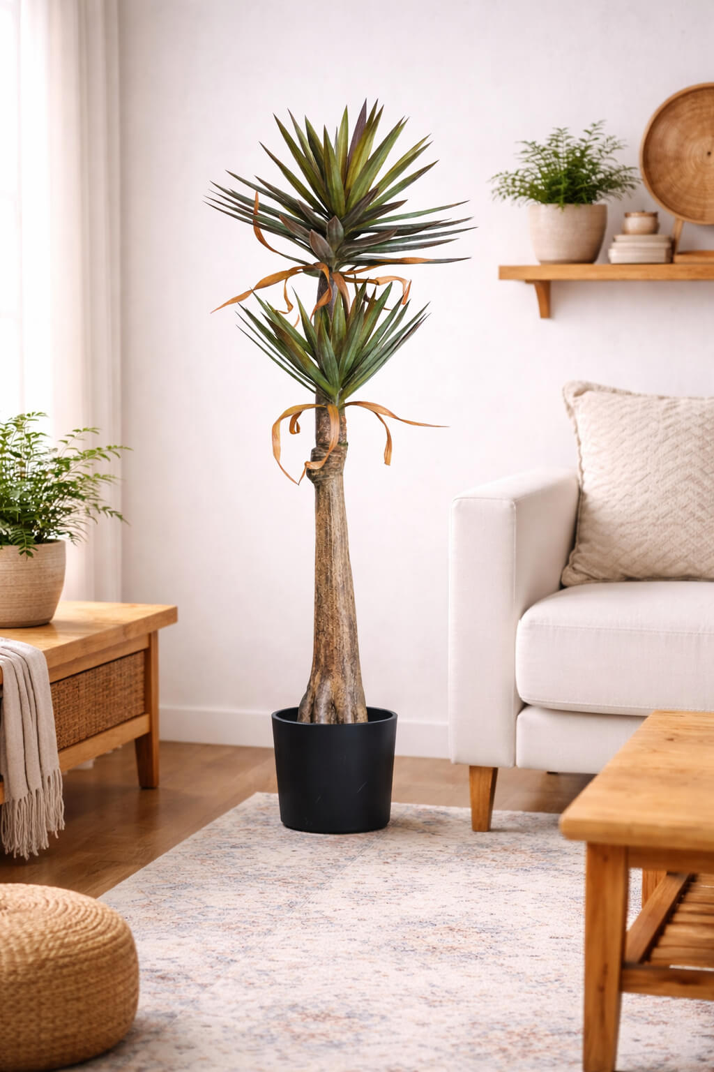 עציץ מלאכותי עם עלים מסילקון, מתאים לכל פינה בבית, במרפסת ובחצר.