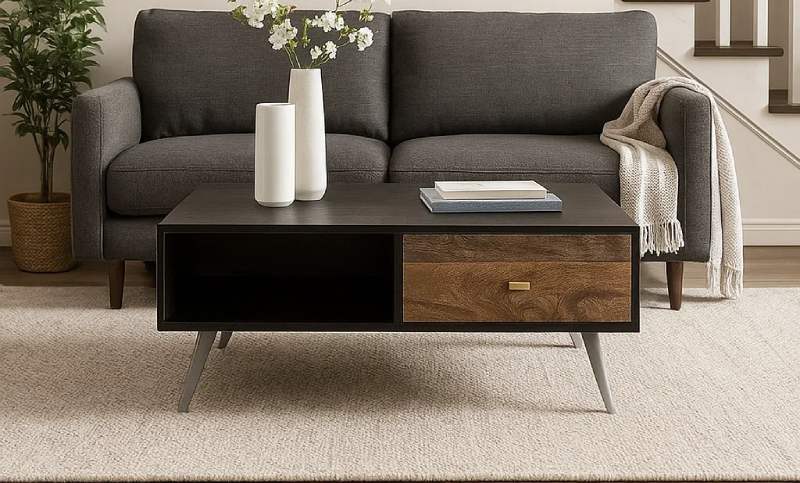 שולחן קפה דגם דרלינג עשוי עץ מלא ואיכותי בשילוב רגלי ברזל