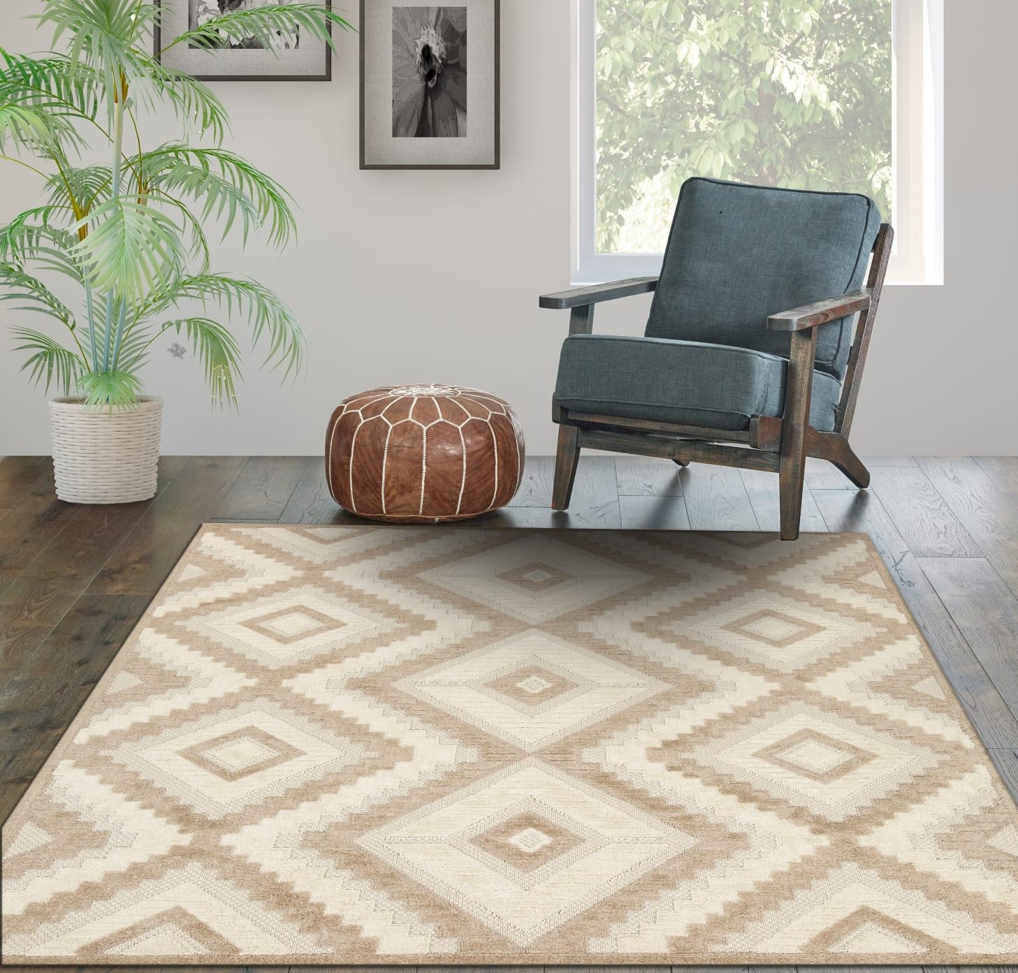 שטיח המשולשים המיוחדים שמנת ולבןASH