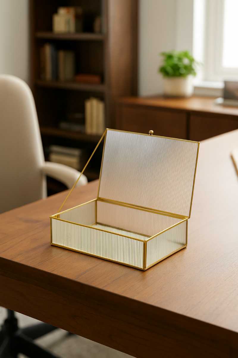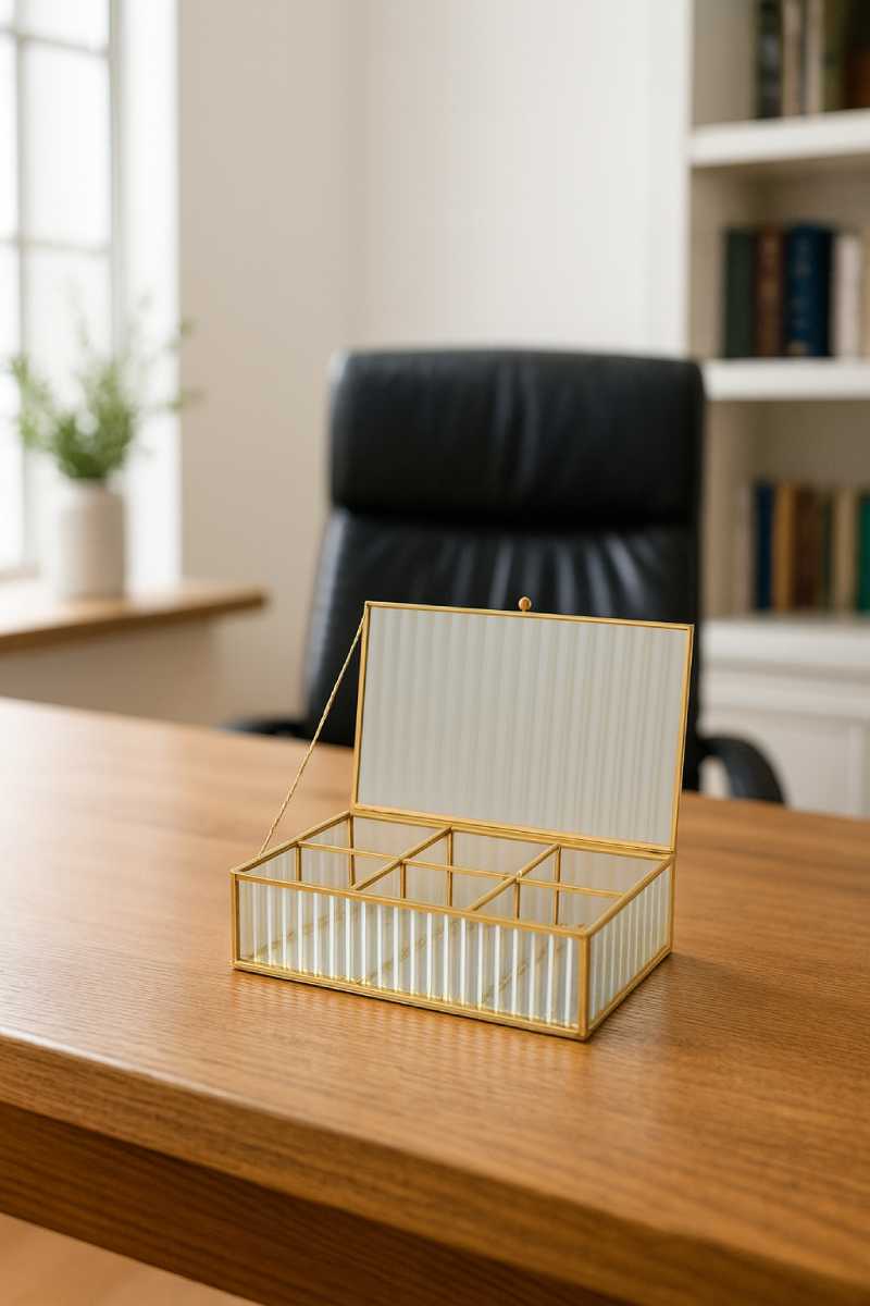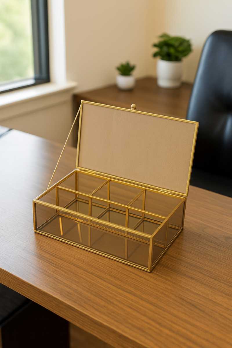 תיבת תכשיטים זכוכית מחולקת בצבע אמבר מהמם