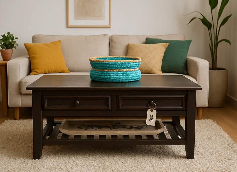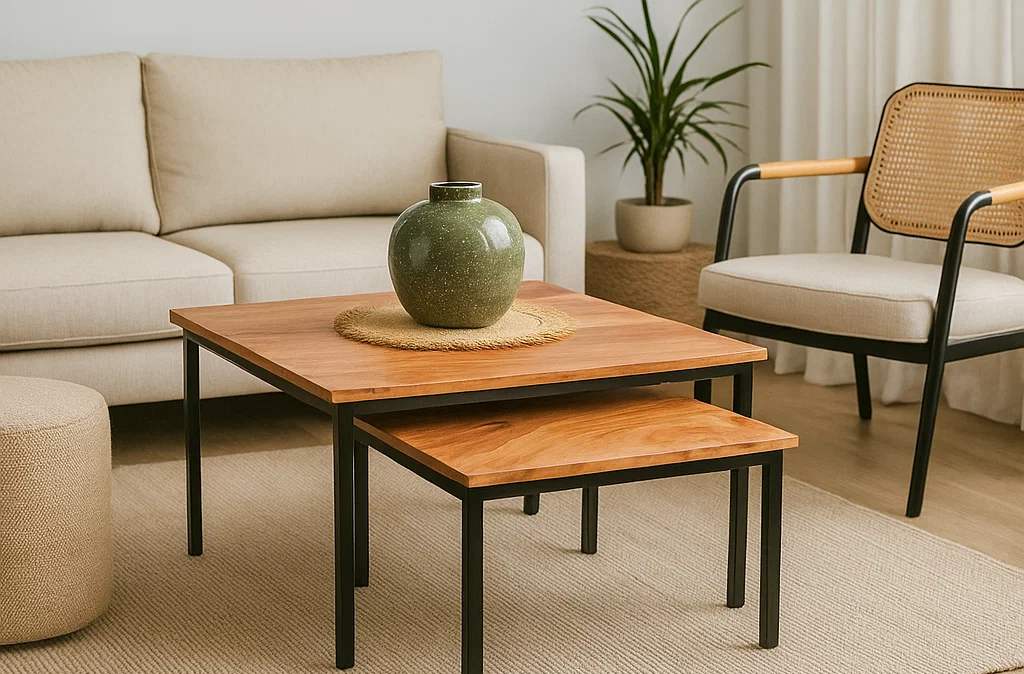 שולחן סלון מרובע עץ מלא עץ סיסאם