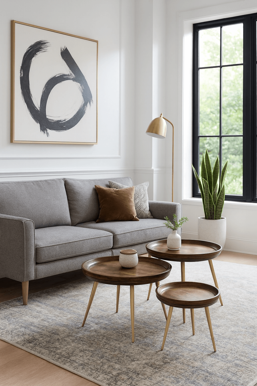 סט שולחנות קפה מעץ עם בסיס רגל דמוי נחושת עיצובי, . צבעו המהמם והעיצוב הייחודי שלו הופכים אותו לאידיאלי לכל פינה בבית. מומלץ!המחיר הוא לסט