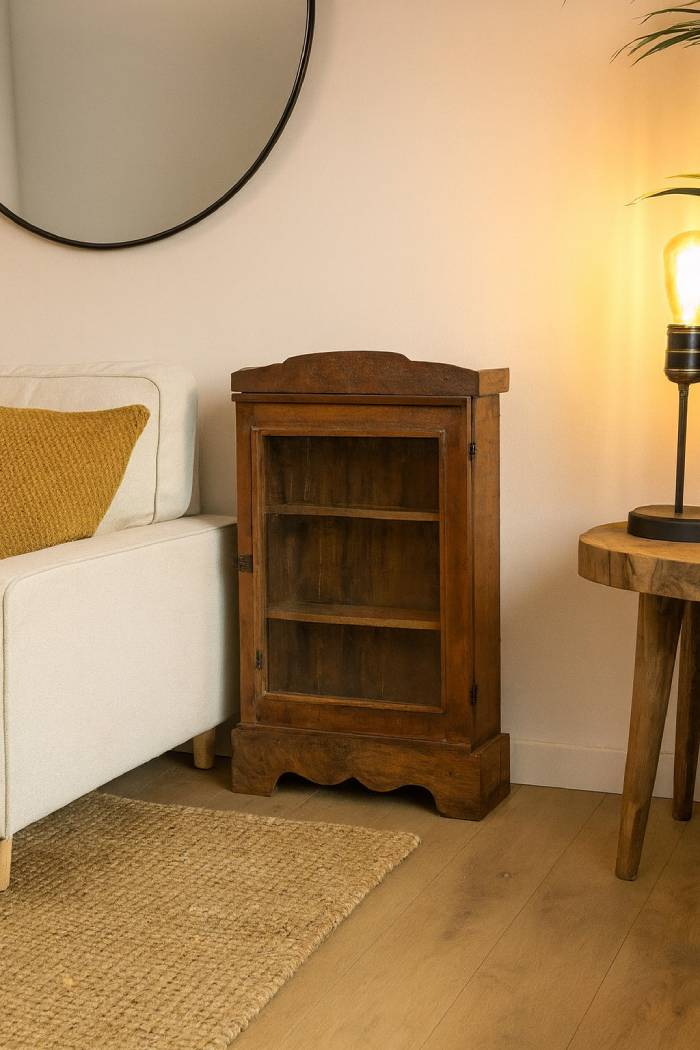 ארונית עץ בגוון עמוק, בסגנון רטרטו. מושלמת לאחסון