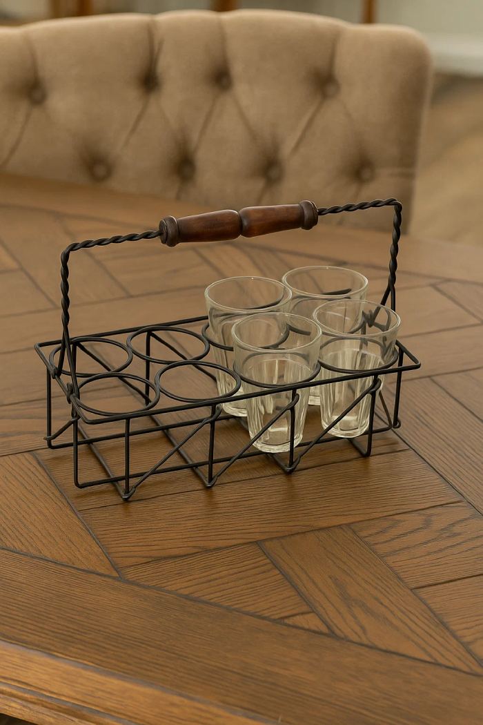 מעמד כוסות שמיניה דגם שני. מעמד שמונה כוסות , שחור מעוצב. פתרון אלגנטי ושימושי להגשה ואירוח עם נגיעה כפרית-יוקרתית. מושלם למטבח, פיקניק או שולחן אוכל