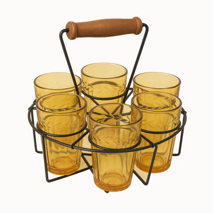 מעמד כוסות דגם ליאור. מעמד כוסות עגול, שחור מעוצב. פתרון אלגנטי ושימושי להגשה ואירוח עם נגיעה כפרית-יוקרתית. מושלם למטבח, פיקניק או שולחן אוכל