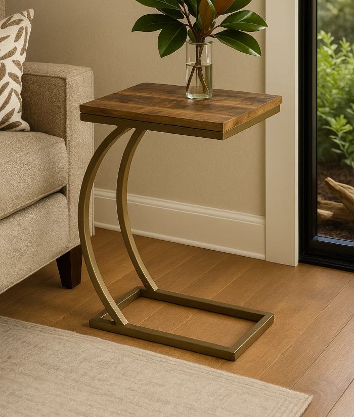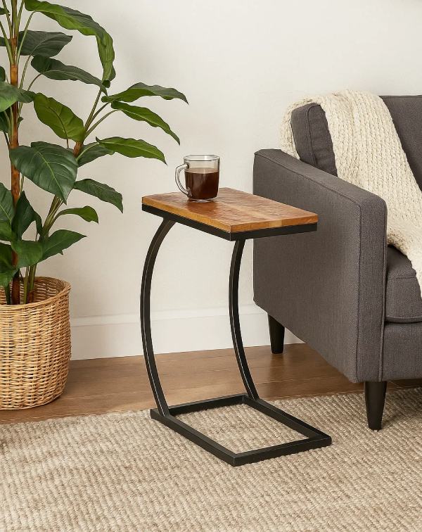 שולחן דגם עורב. שולחן צד בעיצוב מודרני עם משטח עץ ורגל מתכת אלגנטית. פרקטי ונוח להצבה לצד ספה או מיטה, מאפשר שימוש יומיומי נוח עם טאצ' עיצובי ייחודי.