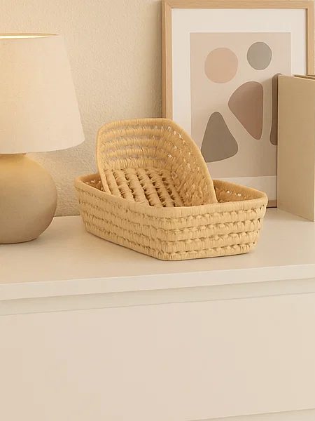 סט סלסלאות קש דגם עופר. סט סלסלאות קש קלועות בעיצוב טבעי וחמים לאחסון ודקורציה. אידיאלי לסידור במטבח, בחדר האמבטיה או בסלון, תוך שמירה על מראה אסתטי ונקי.